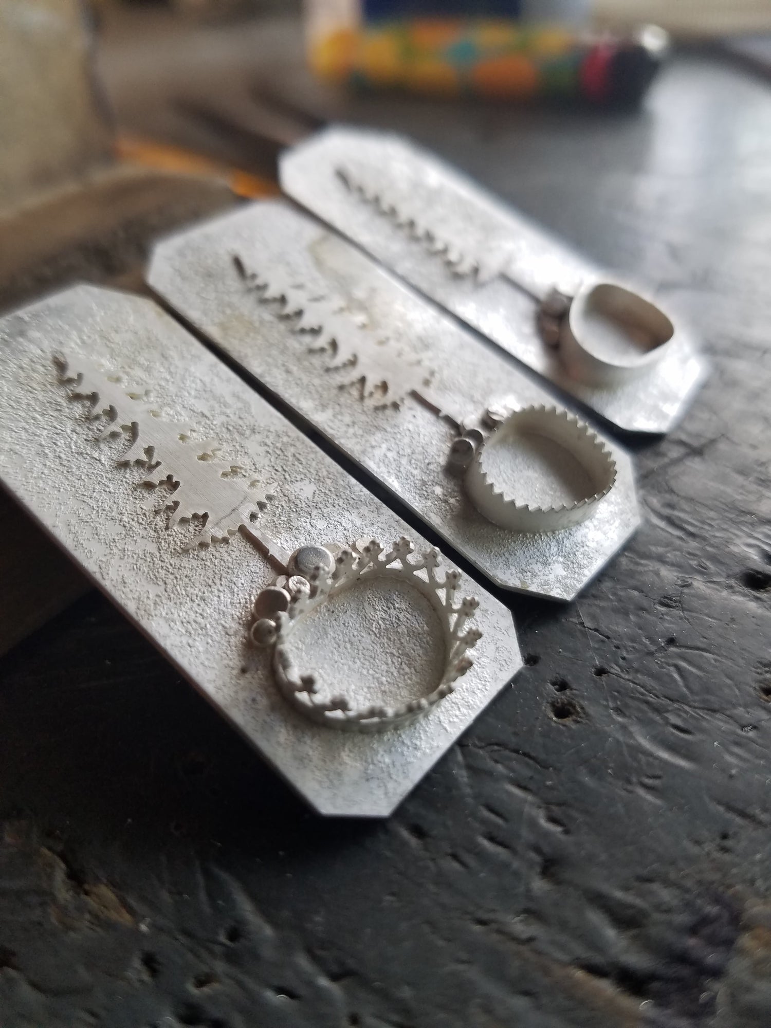 My work often features locally sourced stones that I have cut and polished by hand, then set into custom crafted bezels. Kentucky agate and quartz feature prominently throughout my collections, and I employ various techniques like sawing, fusing and soldering metal pieces together to craft unique, memorable, heirloom-quality pieces.