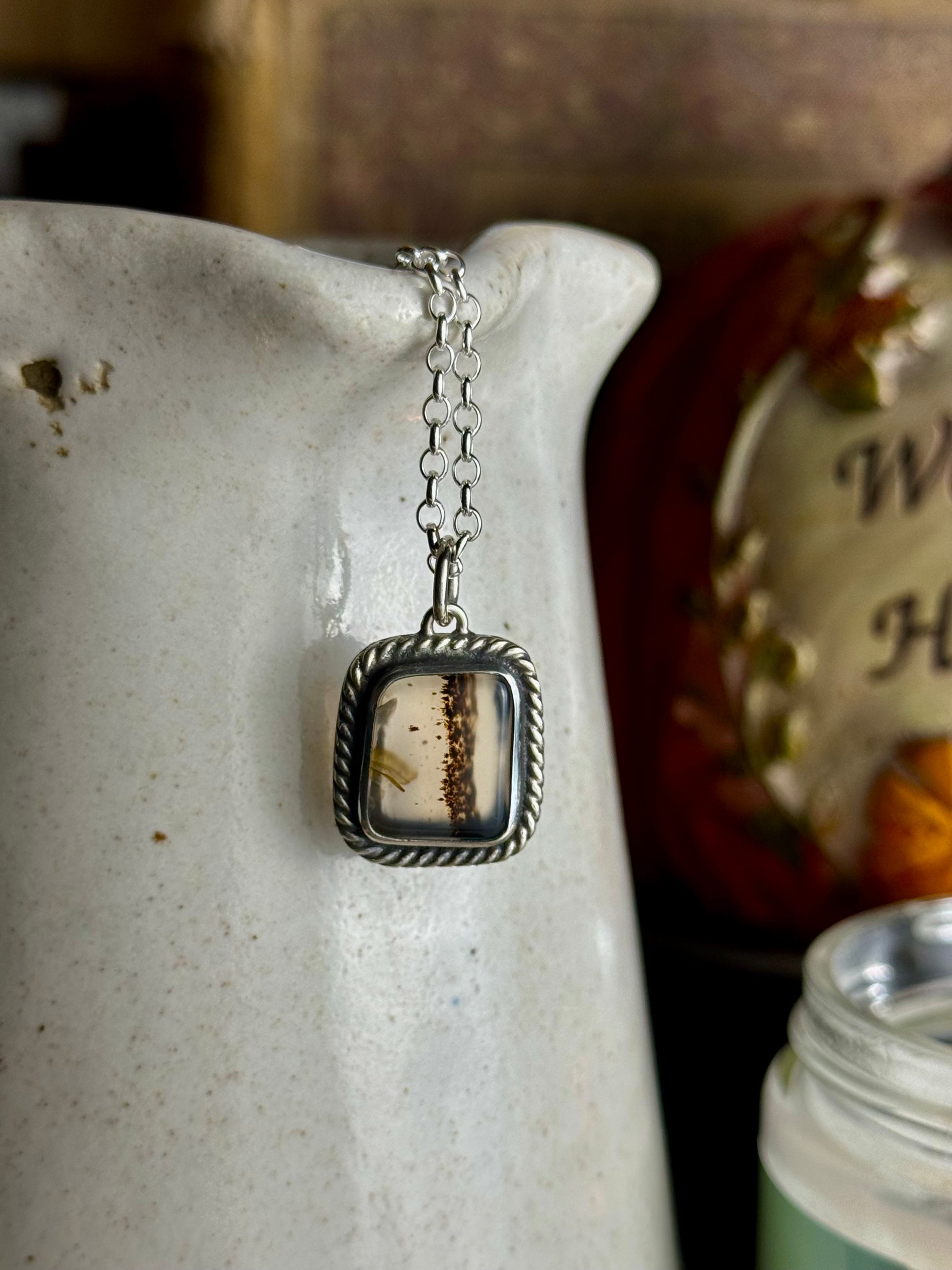 Dainty Montana Agate Necklace 18” Chain