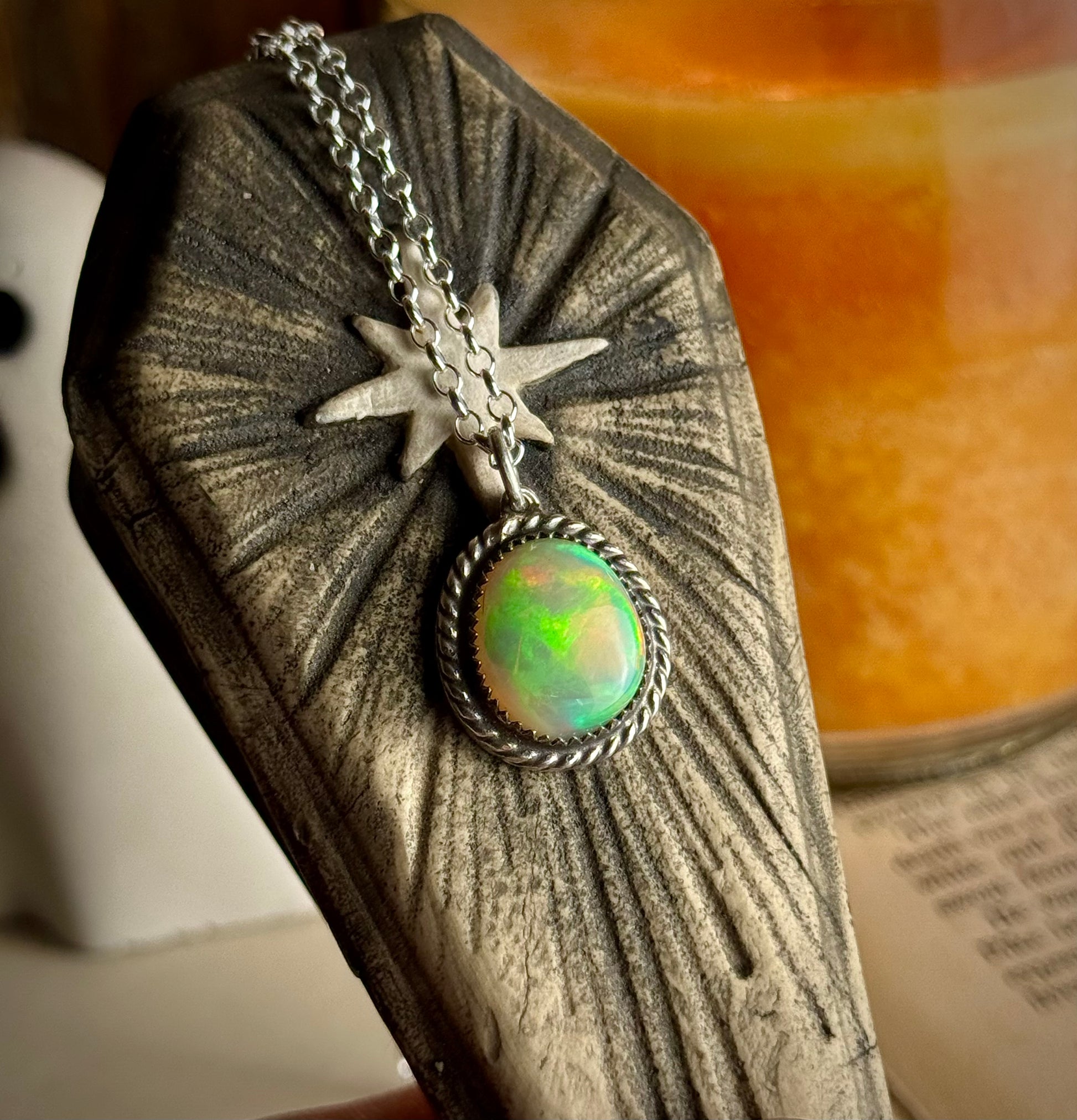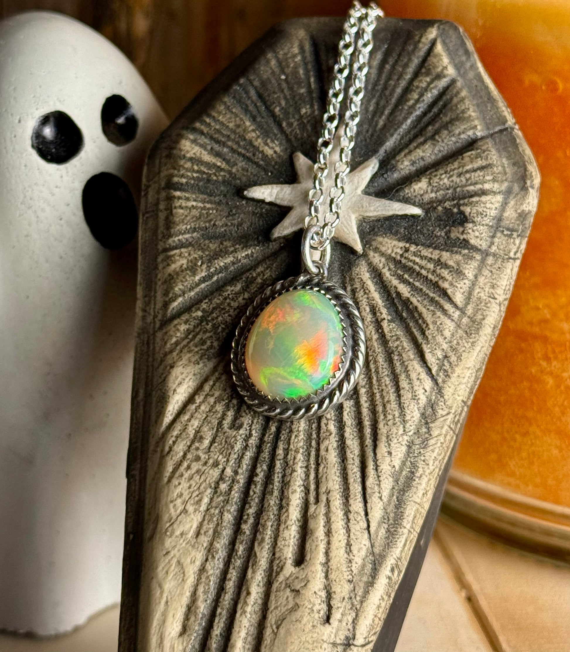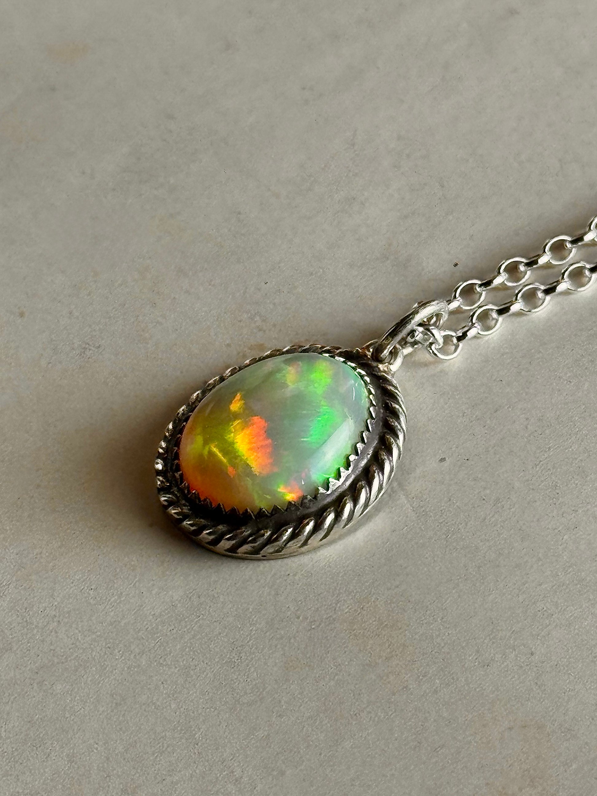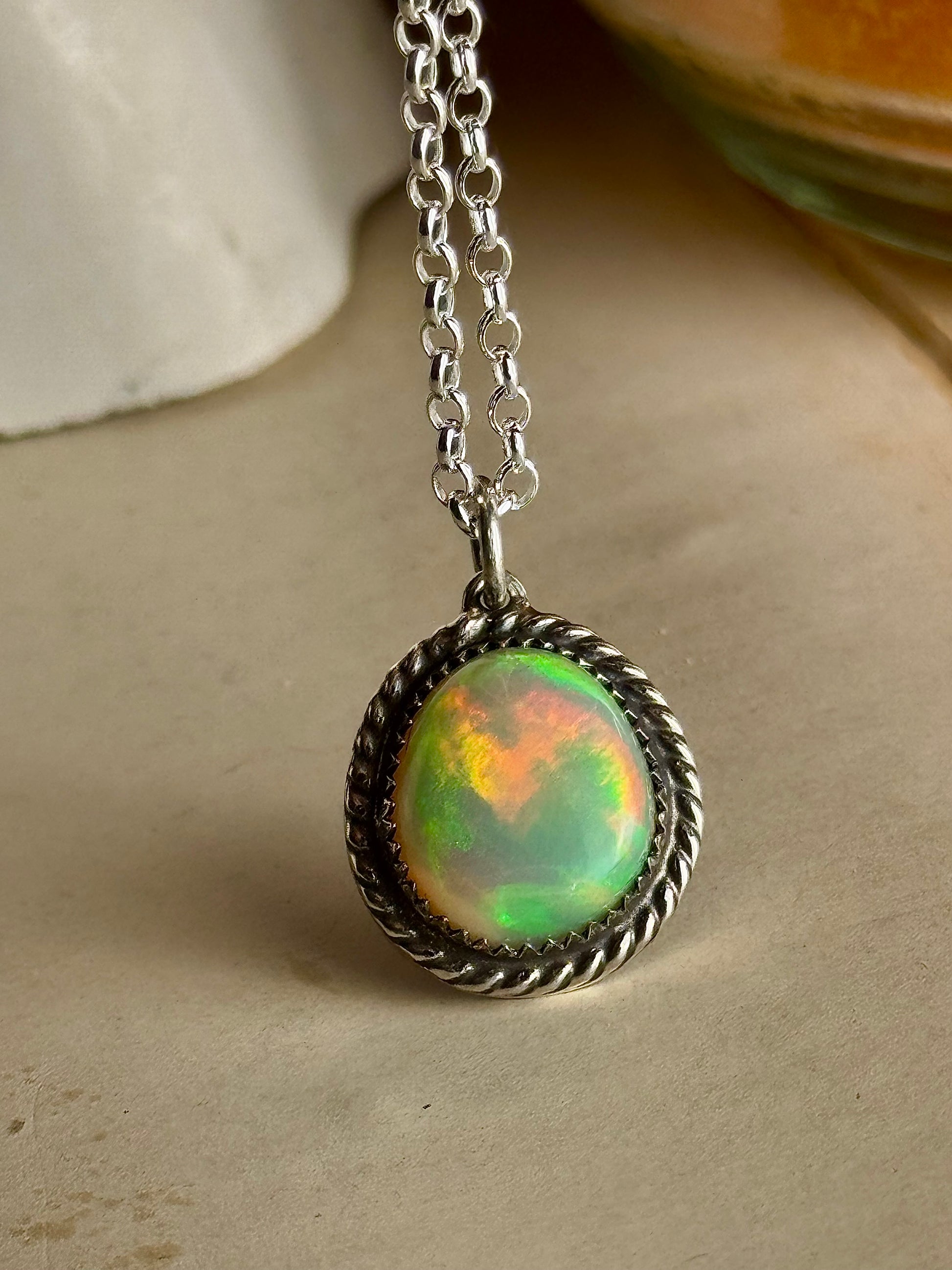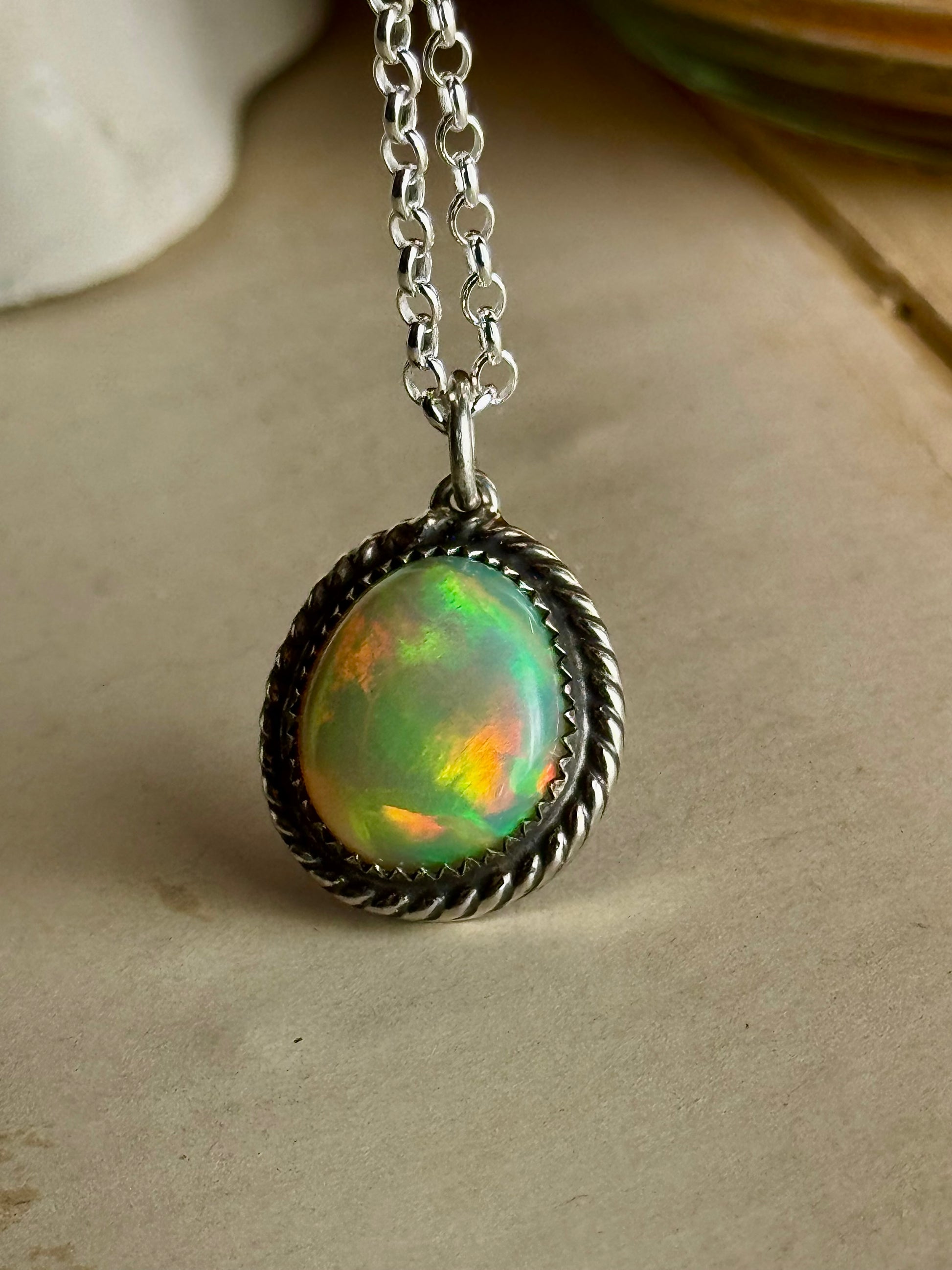 I cut and polished this opal by hand and set it in sterling silver. This is the biggest opal I’ve ever polished and it has beautiful flash.