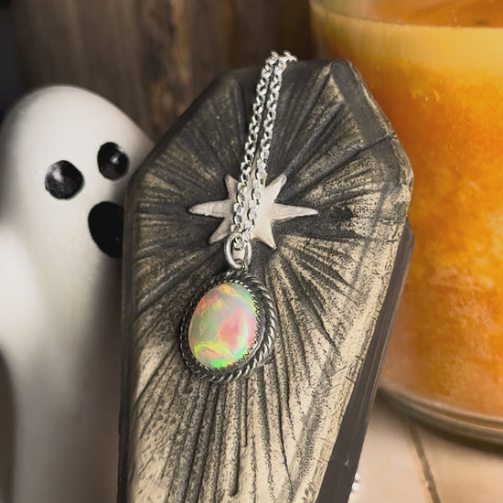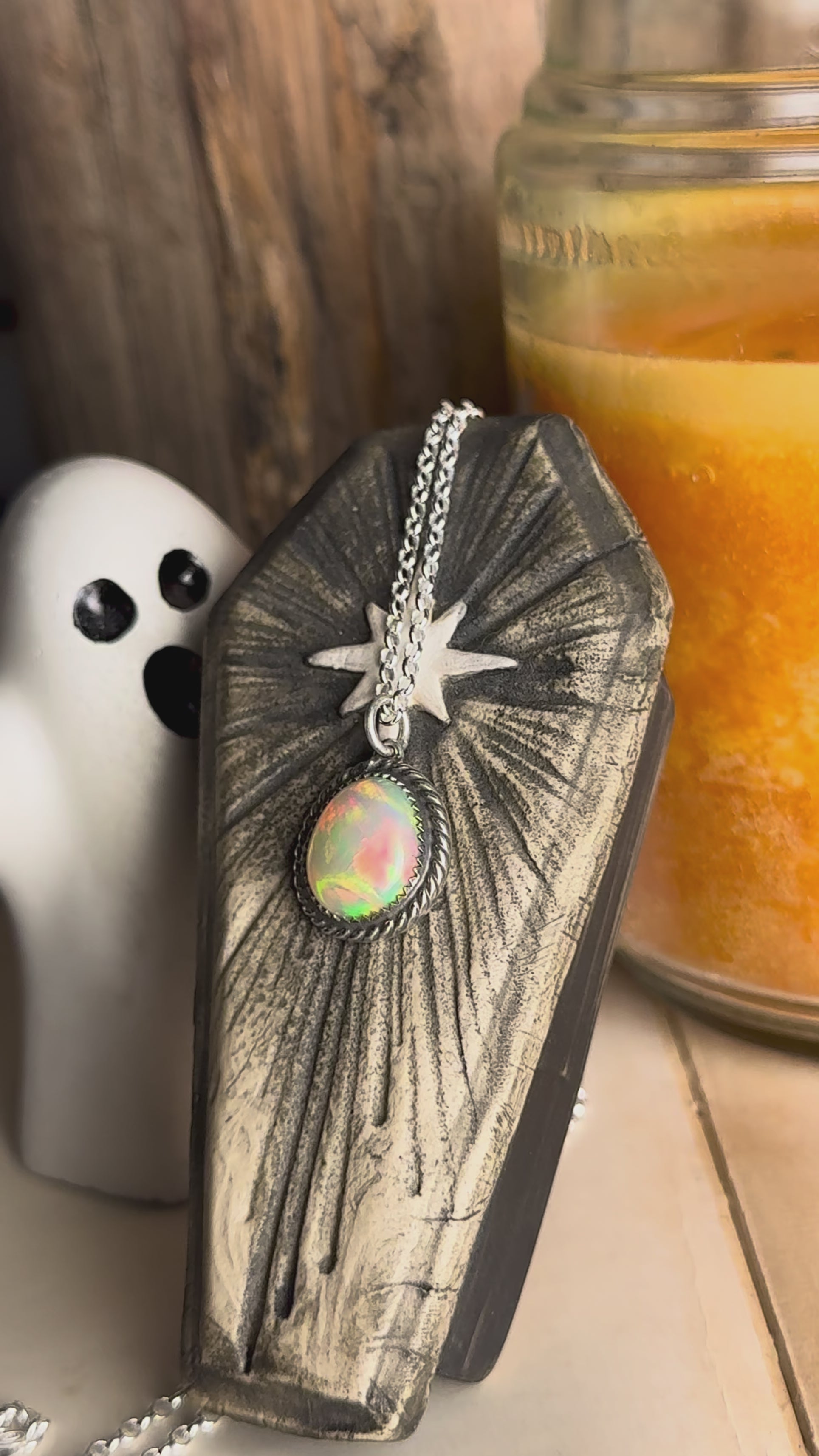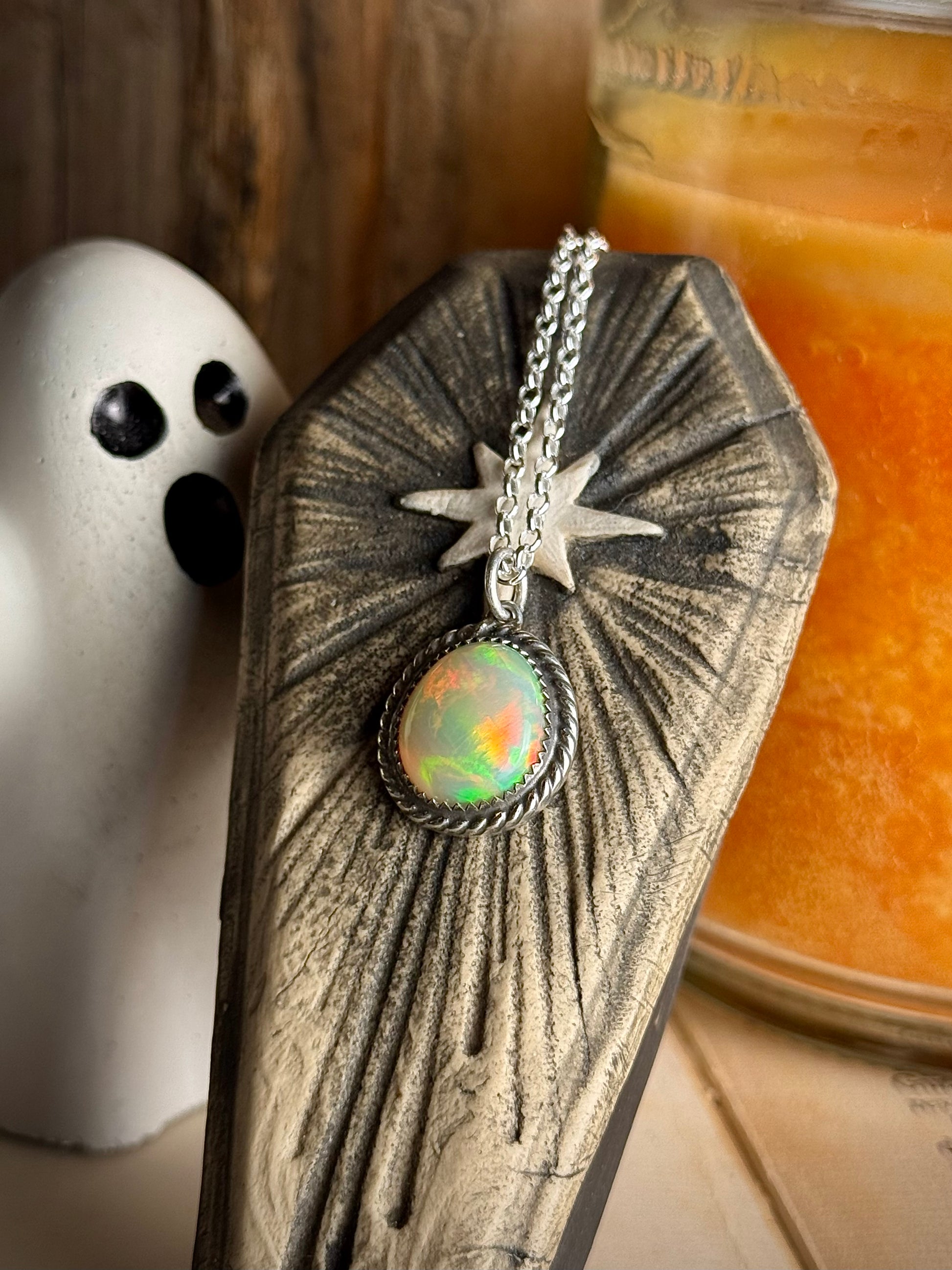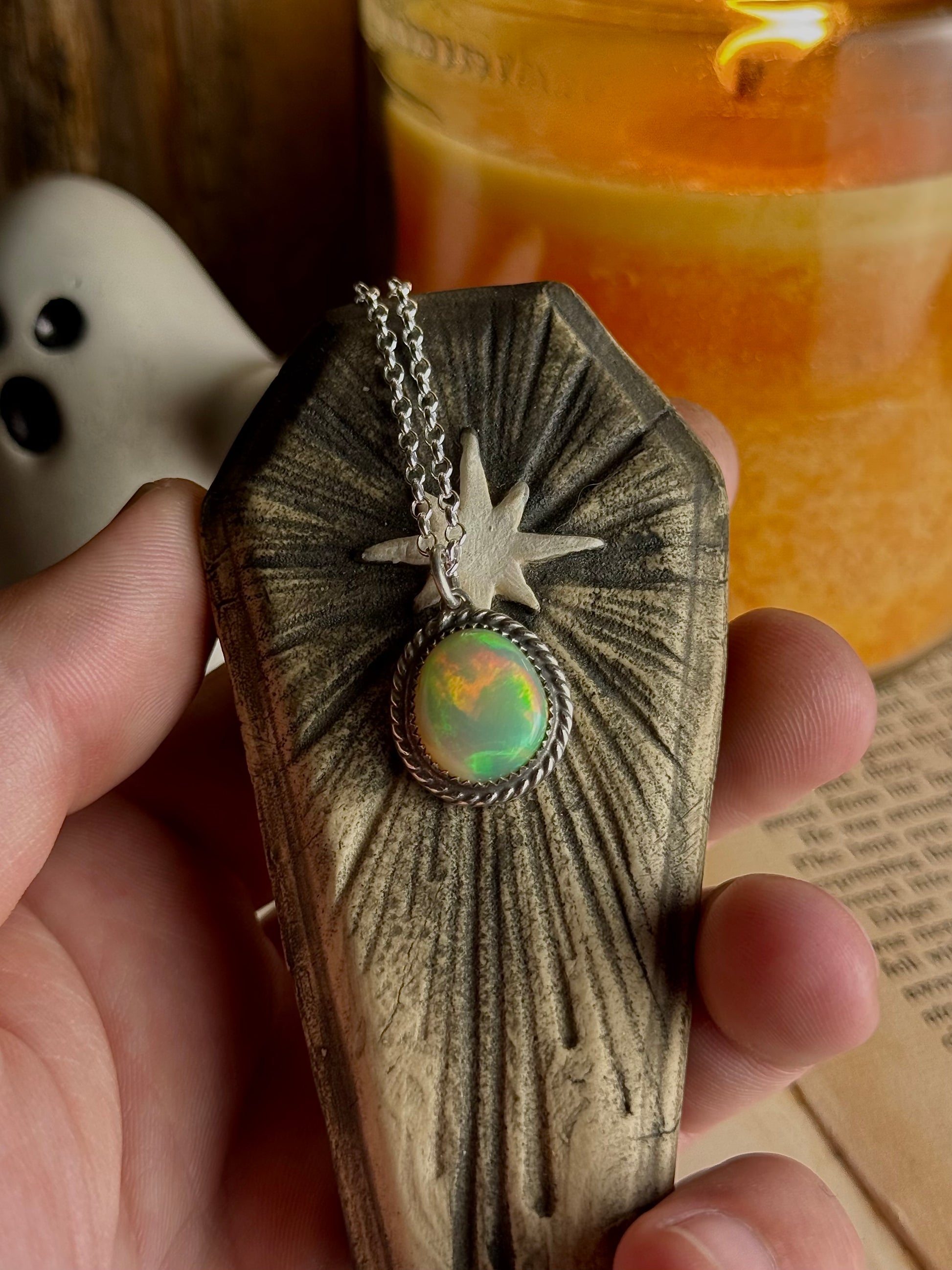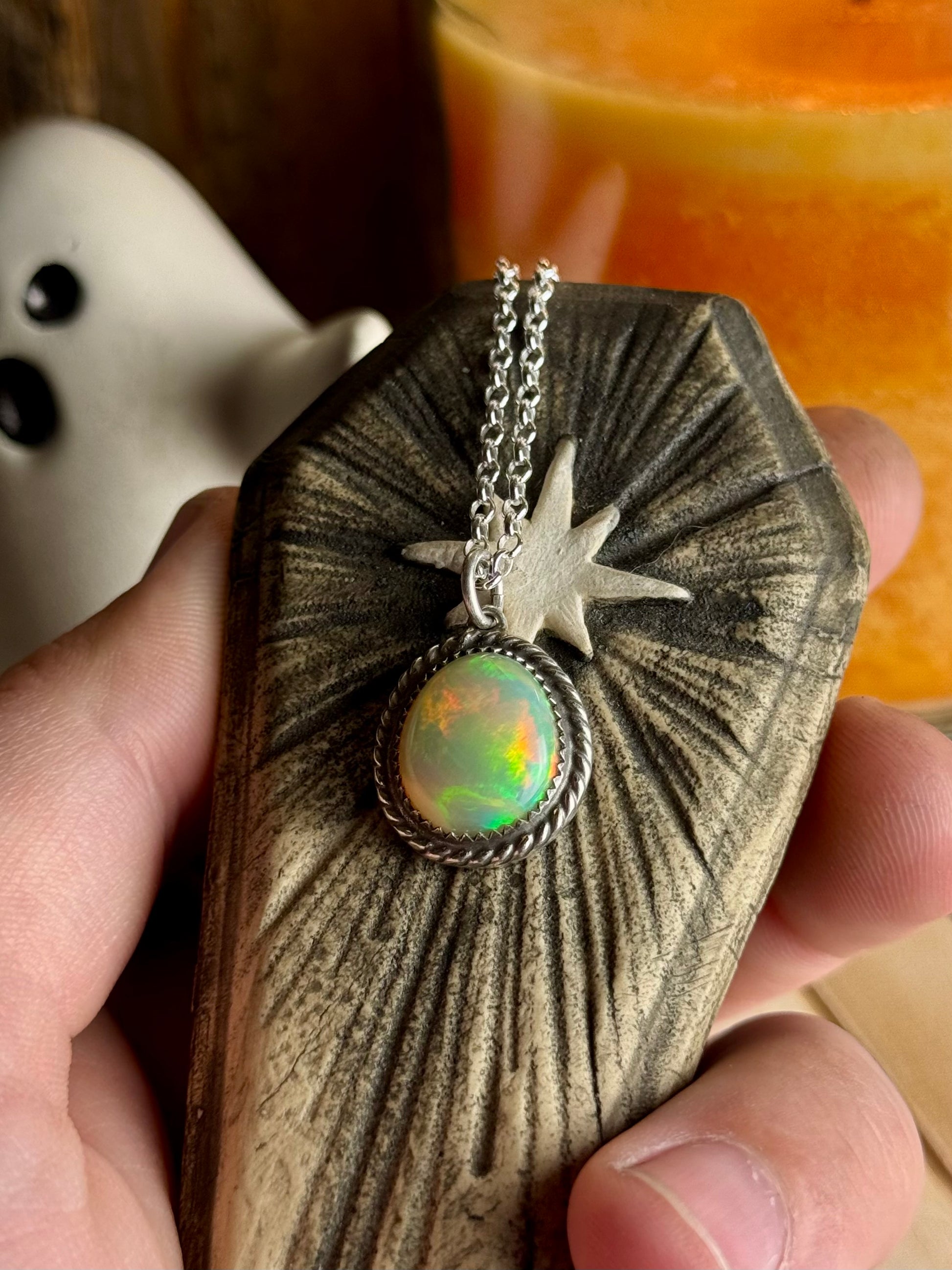 I cut and polished this opal by hand and set it in sterling silver. This is the biggest opal I’ve ever polished and it has beautiful flash.