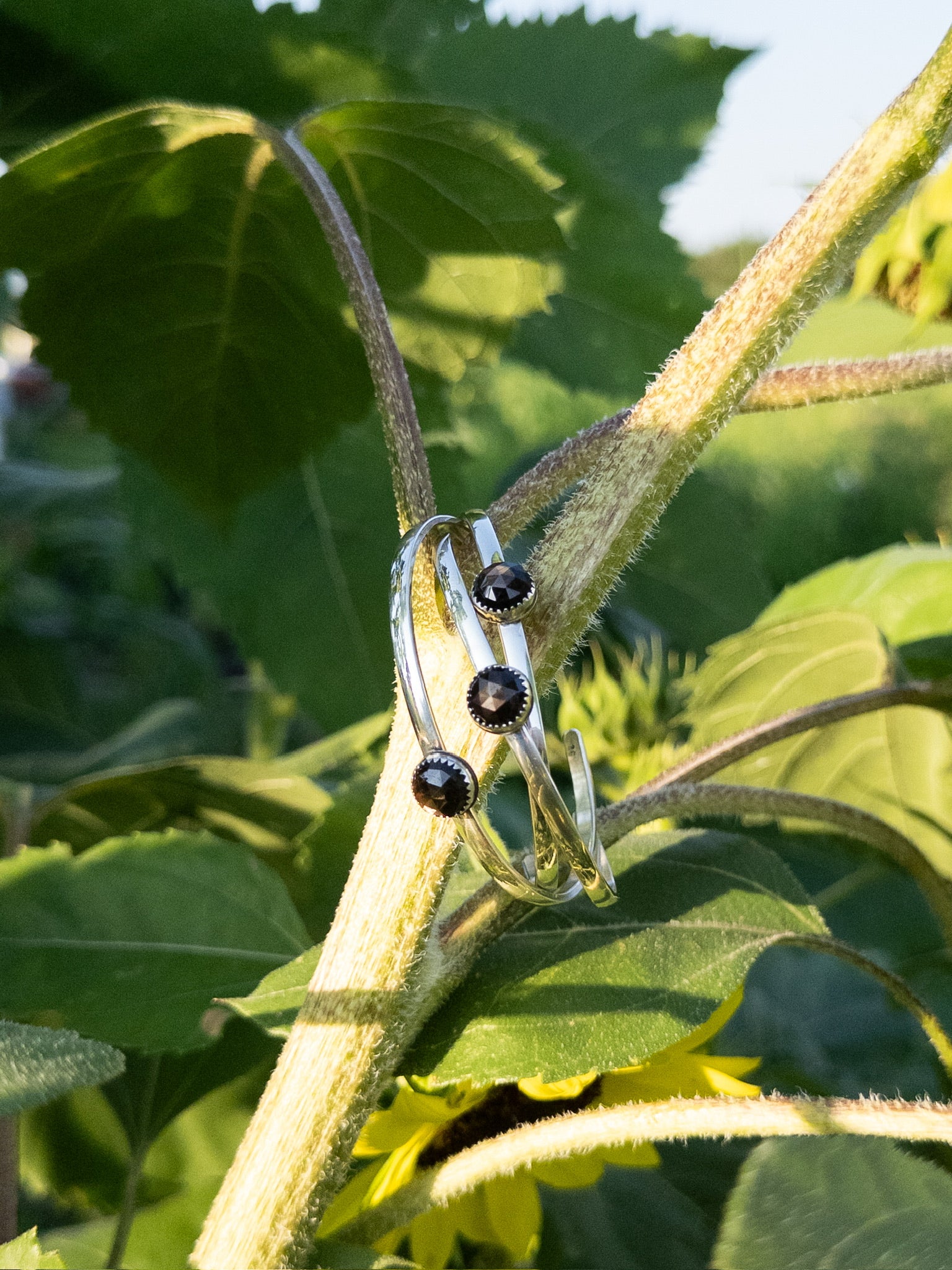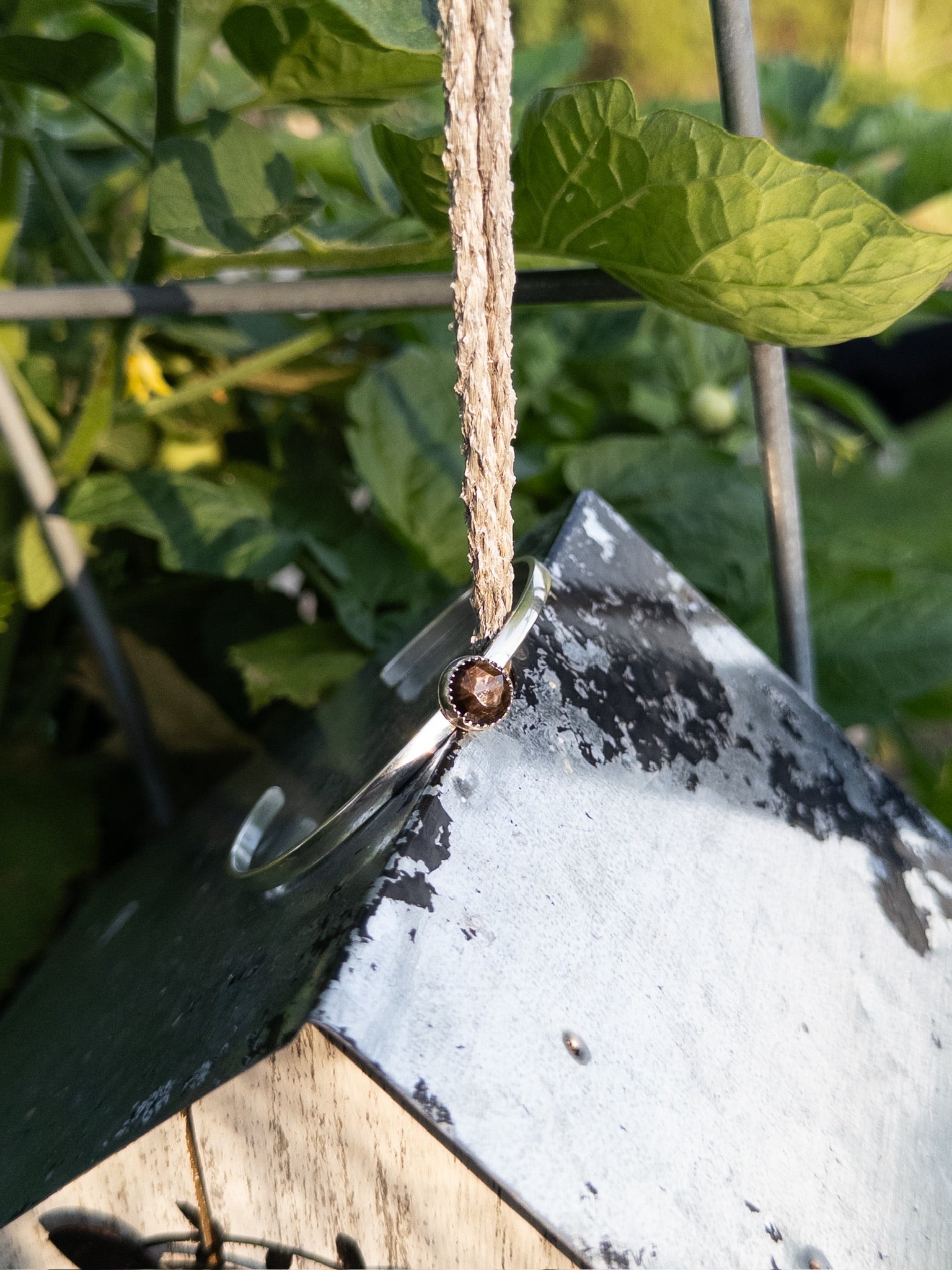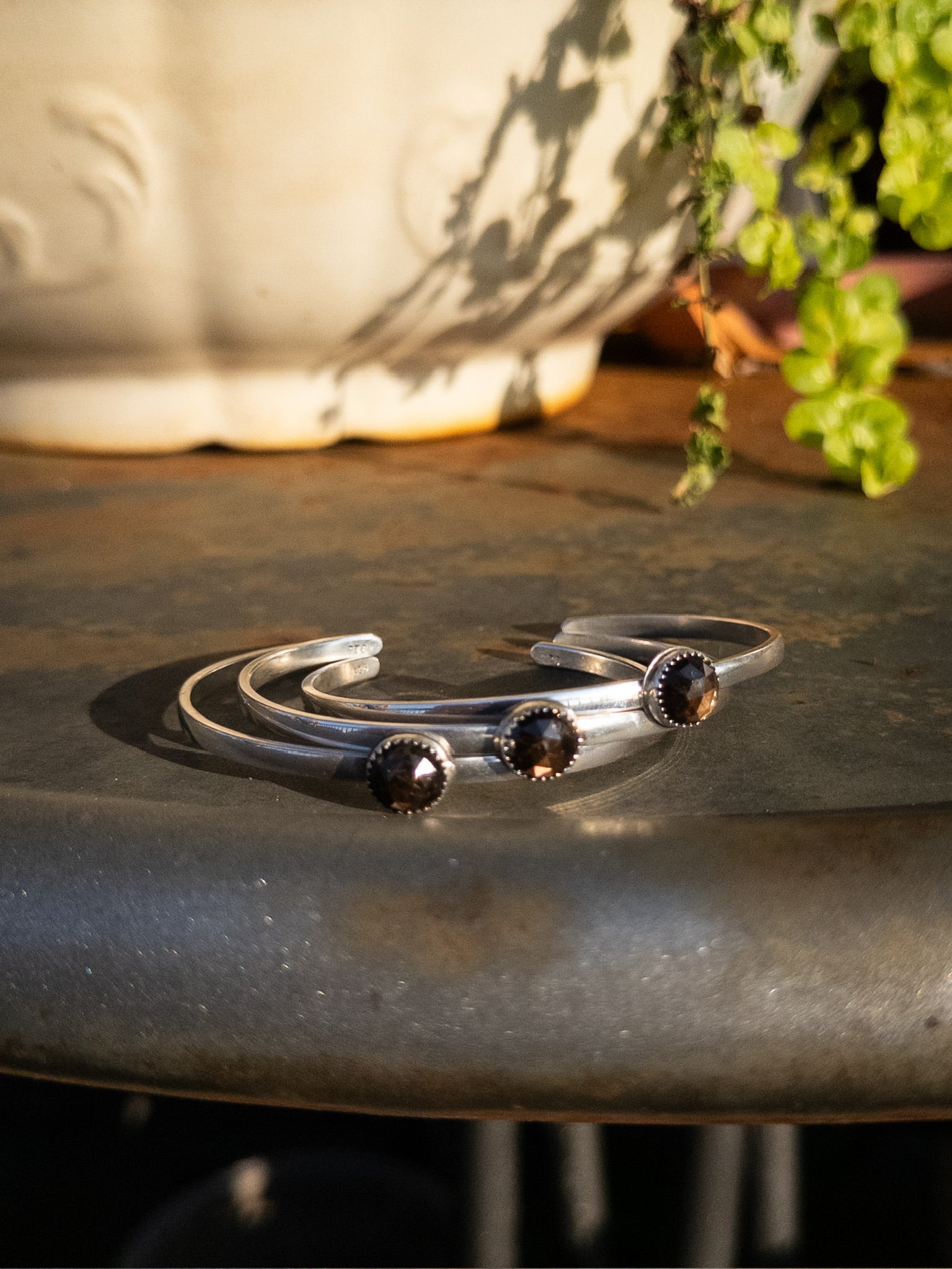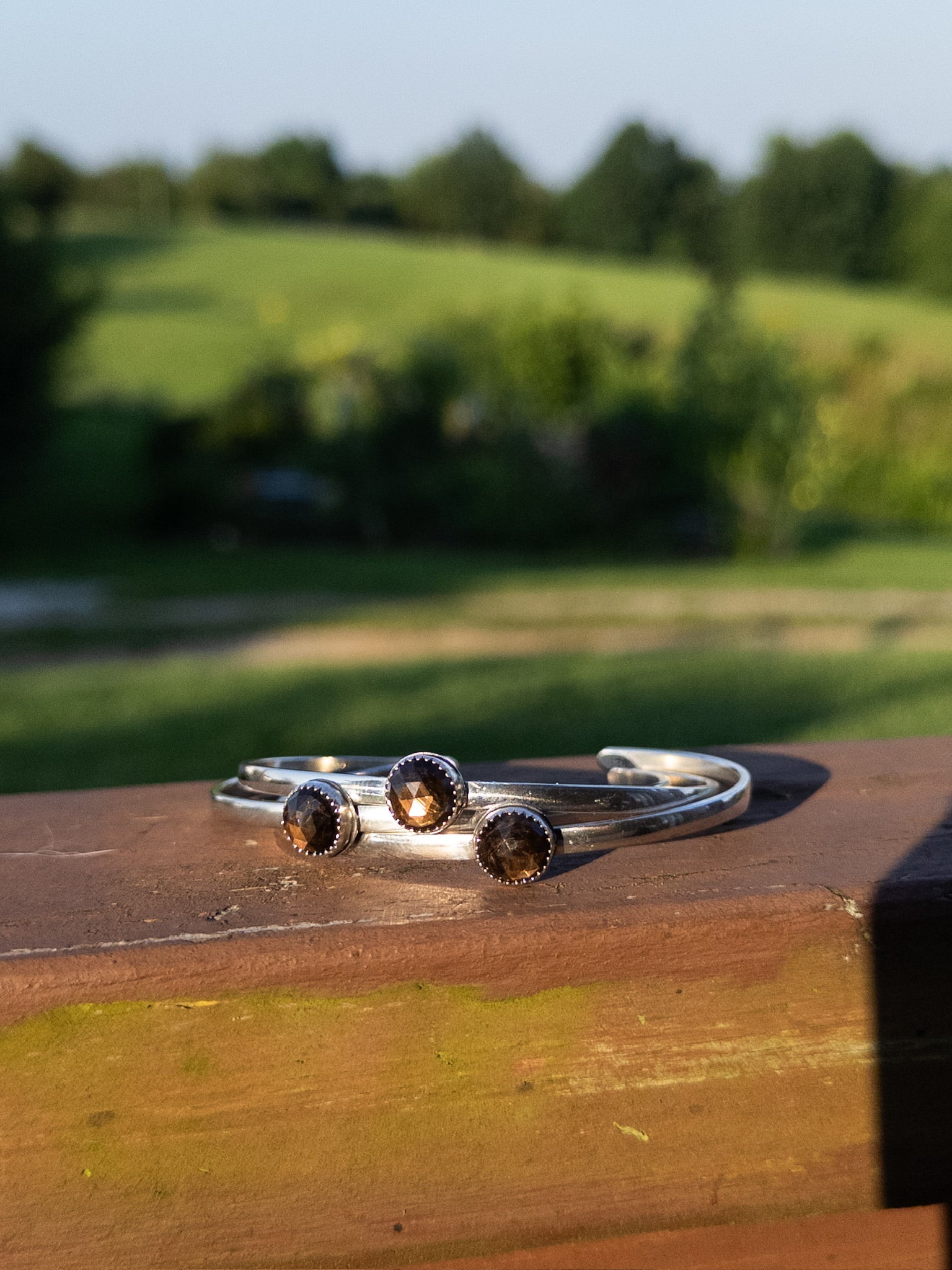Brown chocolate sapphire with a golden flash set in a sterling silver cuff