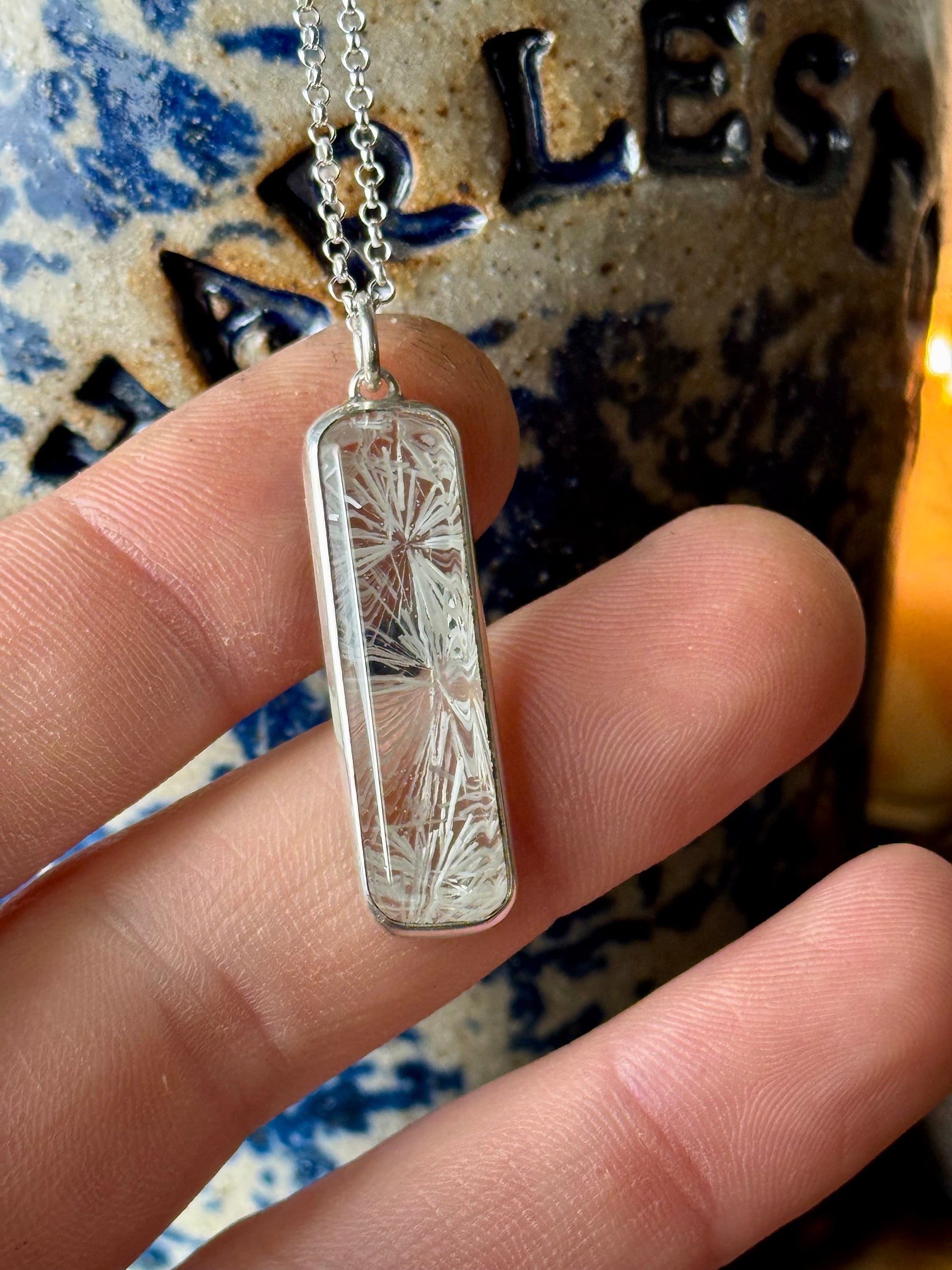 This artisan crafted necklace includes a 20 inch sterling silver chain.
